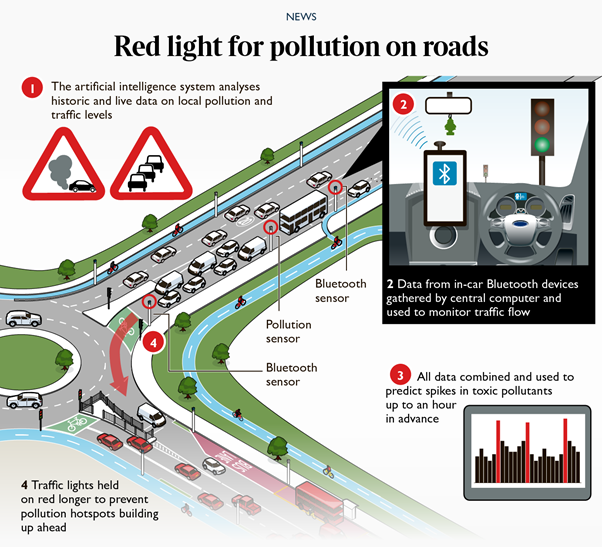 The UK has planned to tackle this pollution problem by leveraging AI to power traffic lights which delay the arrival of vehicles in spots which exhibit a significant amount of air pollution.